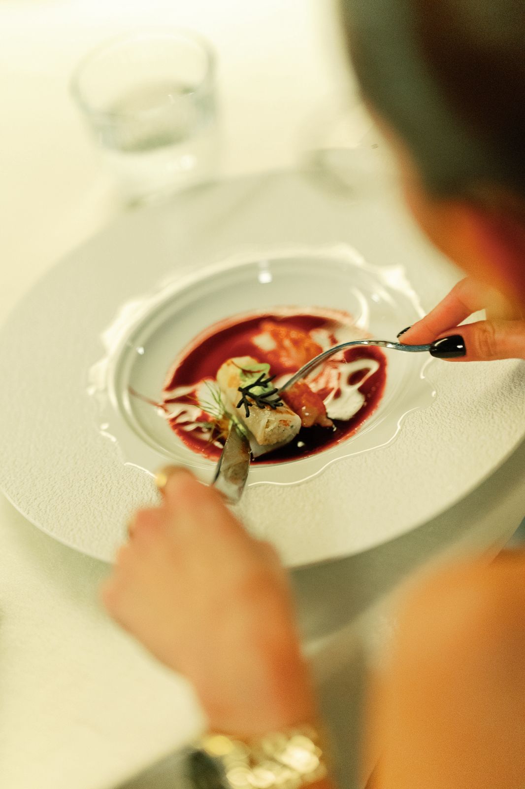 The evening culminated in a curated multi-course dining experience led by Chef Karim Abdel Rahman and Chef Necati Gumus. Moving beyond standard composition, the chefs designed a menu highlighting eight foundational pillars of tableware design. Each course drew from the brand’s most iconic forms, from the organic fluidity of the Reef Collection to the disciplined craftsmanship of the legacy Ring Gold series. The result demonstrated how plate design guides a chef’s creative process and elevates the guest’s experience even before the first bite.